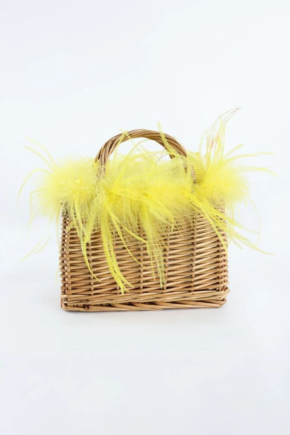JAYLEY Yellow Hand Made Salines Straw Bag With Ostrich Feather